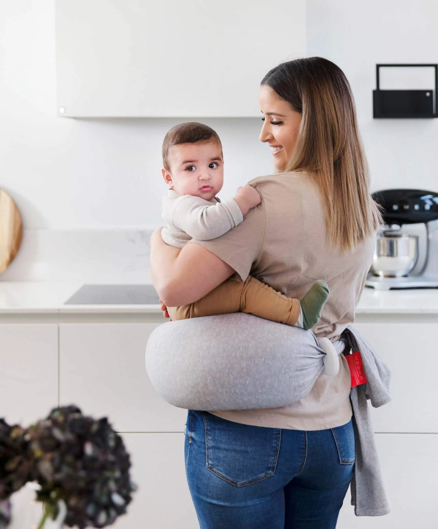 With ties on the ends, it attaches around your waist to give better neck and shoulder support for you and additional comfort for your baby. When you aren’t feeding, tie it around your waist and it converts into a comfortable hip carrier.